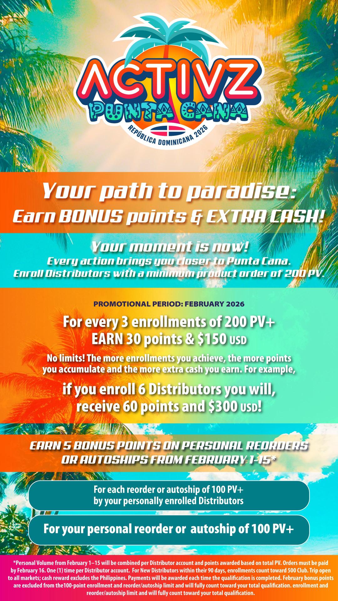 1. Enroll New Distributors or Preferred Customers with a minimum of 100 PV+